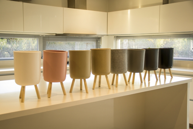 Maceta en rotomoldeado con pies de madera que le dan un toque especial y distintivo. Ideales para ambientar el interior de tú casa u oficina. No se destiñen con la luz solar.